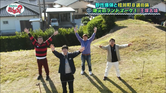 野性爆弾と桂川町8選▽古墳を空から見てみたら…▽超パワフルマダム軍団が4人を圧倒?▽桂川町のカルタで対決!大吉先生の意外な弱点▽筑穂牛の絶品レモンステーキに感激