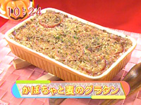 かぼちゃ 200g押し麦 50gベーコン 50g水 150cc牛乳 100ccトマト 1/2個ピザ用チーズ 40gパン粉 適量塩 小1/2弱オリーブオイル 適量