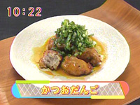4人分(10~15個)かつお(刺身用のサク) 400gたまねぎ(みじん切り) 1/2個しょうが(おろしておく) 10gにんにく(おろしておく)1片卵白 1個分塩 小1/2味噌 小2片栗粉 小1ごま油 小1ソース用ポン酢+ラー油(ごま油)+だいこんおろし 適量卵黄+しょうゆ 適量薬味用春菊(3本くらい)+ごま油 適量