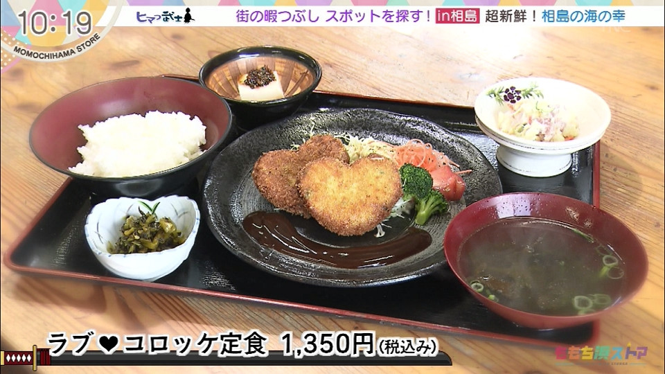 【住所】福岡県糟屋郡新宮町1382 島の駅あいのしま内 ラブ コロッケ定食 1350円(税込み) *ヒマつ武士にて紹介