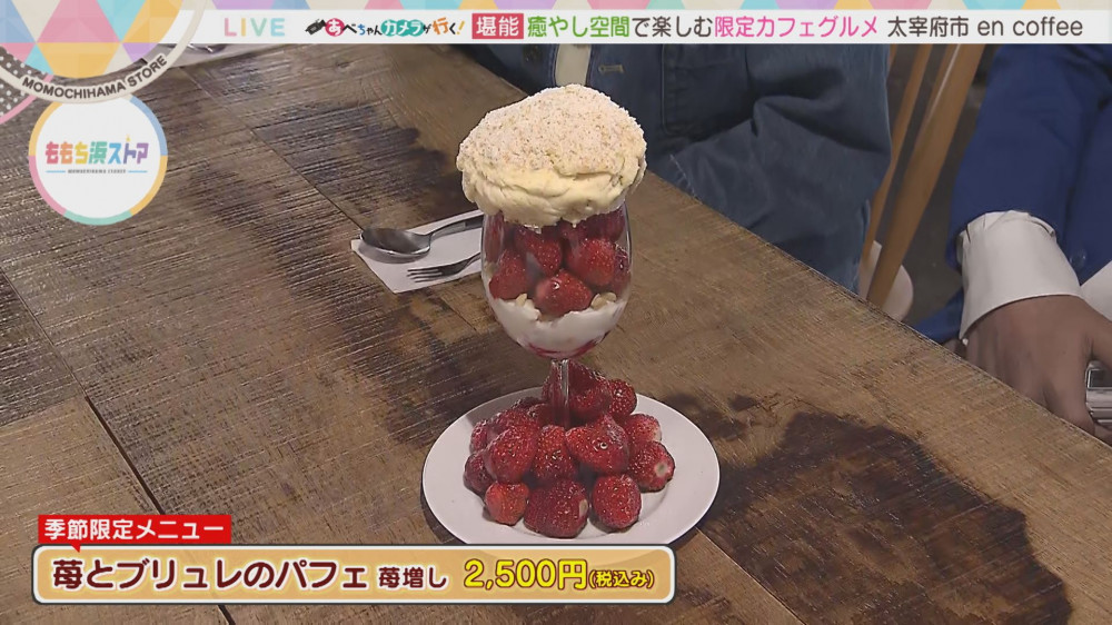 季節限定メニュー 苺とブリュレのパフェ 苺増し 2500円(税込み)