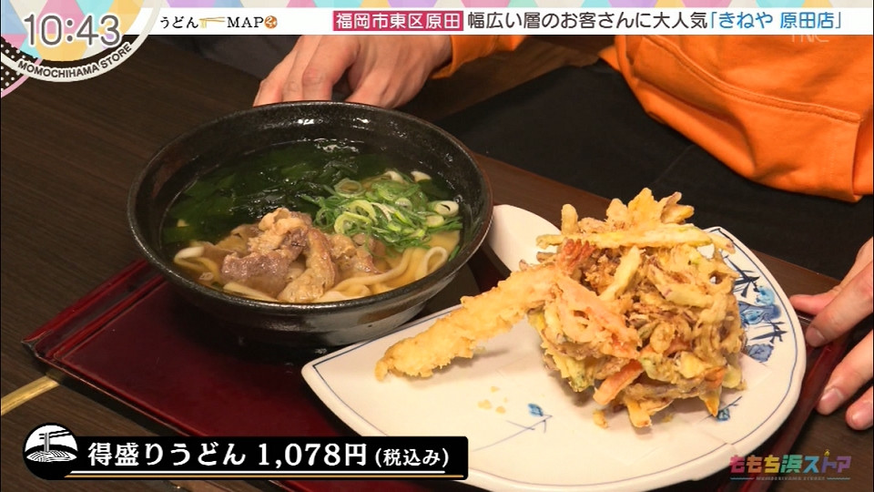 【住所】福岡市東区原田1-24-37 【電話】092-622-1098 【営業時間】11:00~21:30 得盛りうどん 1078円(税込み) *うどんMAP 2代目にて紹介
