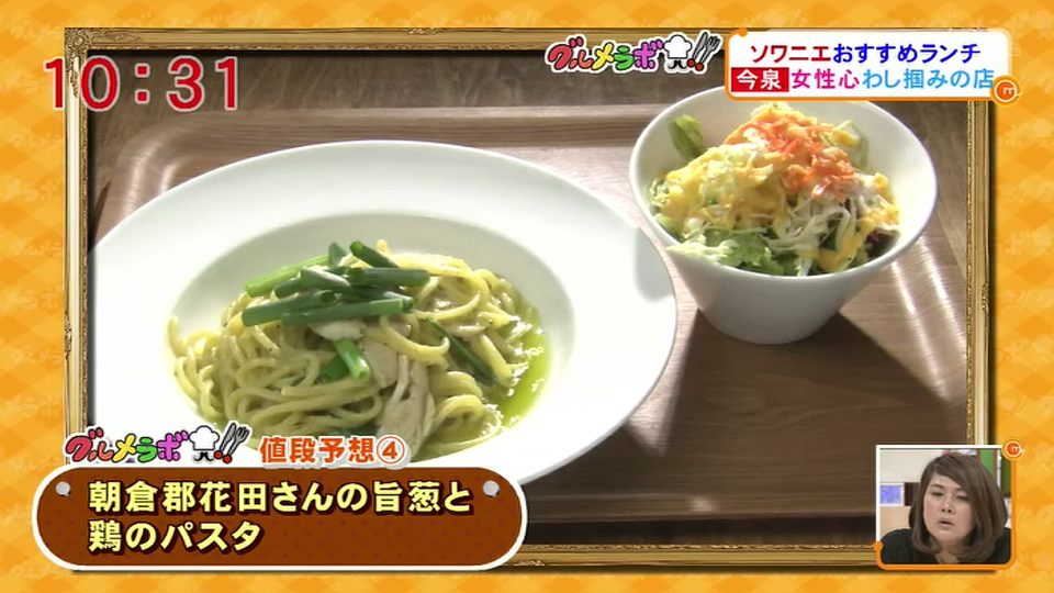 朝倉郡花田さんの旨葱と鶏のパスタ 600円(税込)