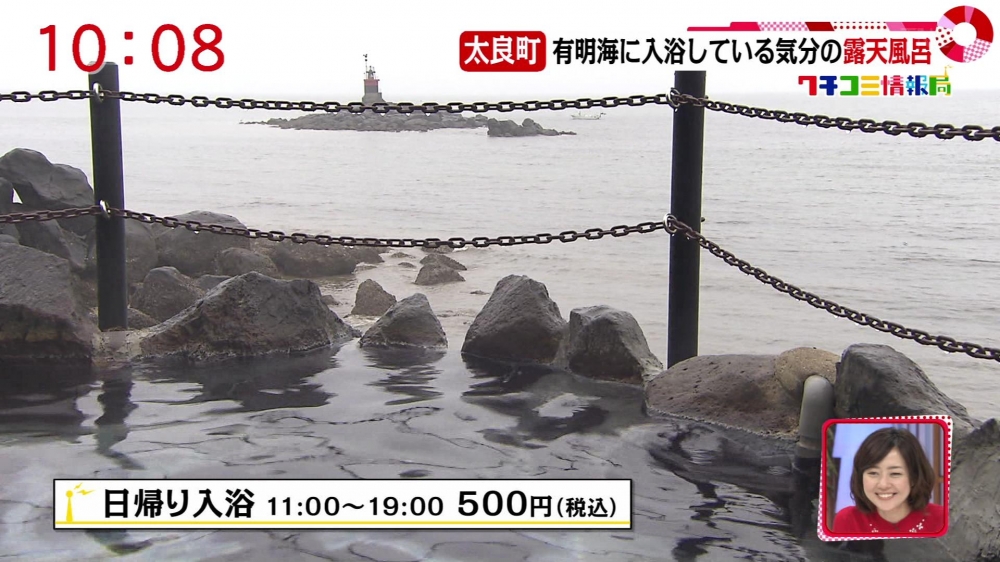 【住所】佐賀県藤津郡太良町大浦丁1701 【電話】0954-68-2217 【営業時間】11:00~19:00 日帰り入浴 500円(税込)