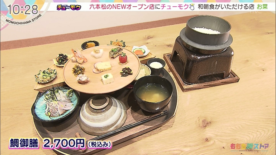 【住所】福岡市中央区六本松2-5-1 鯛御膳 2700円(税込み) 朝食 特上お菜御膳 3500円(税込み) *木曜日のチューモクにて紹介