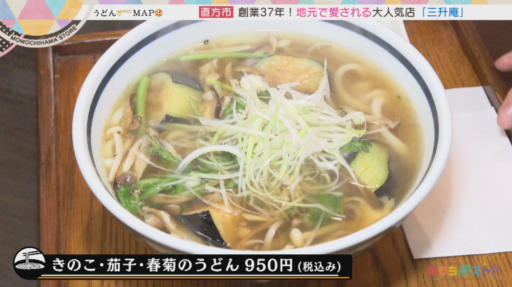 きのこ・茄子・春菊のうどん 950円(税込み)