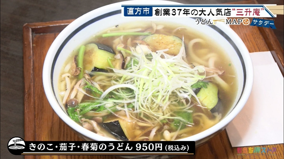 きのこ・茄子・春菊のうどん 950円(税込み)