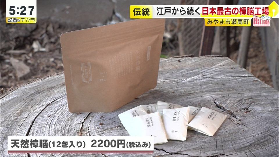 住所:みやま市瀬高町長田1863-1 天然樟脳(12包入り) 2200円(税込み) *マイニチ出口調査にて紹介