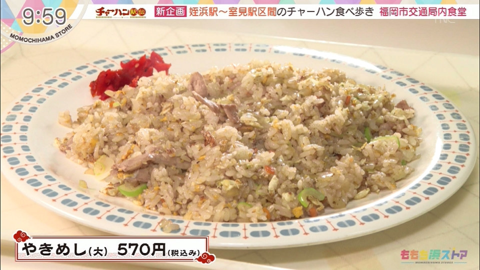 【住所】福岡市西区姪の浜5-9-1 【営業時間】7:30~15:00 【定休日】1月1日・2日 やきめし(大) 570円(税込み) *チャーハン駅伝にて紹介