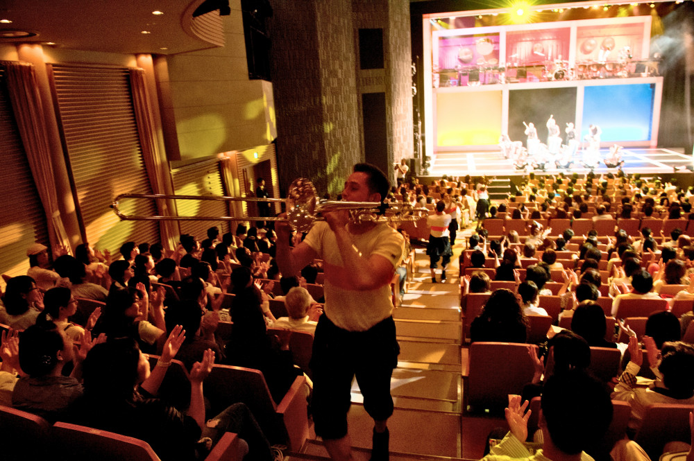 60 種類以上の楽器を演奏するミュージシャンは絶えず動き回りながらも美しい⾳⾊と完璧なフォーメーションで魅せ、