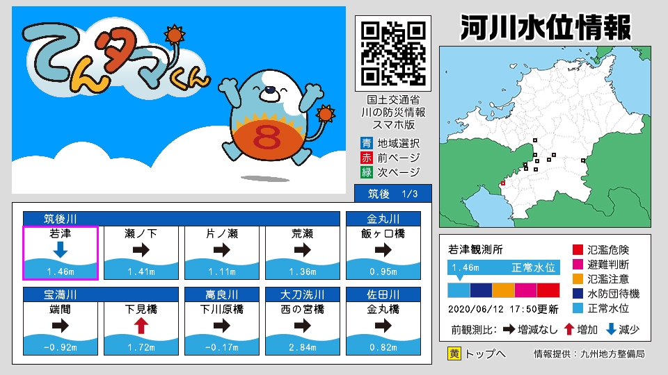 下枠内には、水位・警戒状態・更新時間等が表示されます。