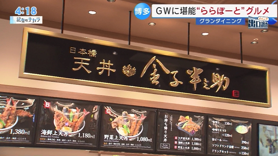 住所:福岡市博多区那珂6-23-1 ららぽーと福岡3F 電話:092-586-5565 営業時間:11:00~21:30os 江戸前天丼 1380円(税込み)