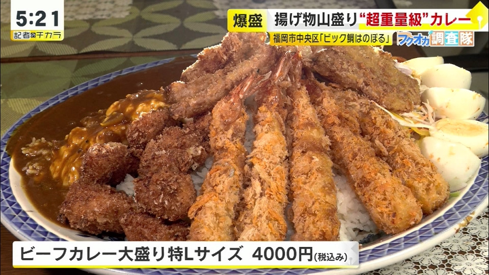 住所:福岡市中央区渡辺通1-1-1 サンセルコB1F ビーフカレー特盛Lサイズ 4000円(税込み) *フクオカ調査隊にて紹介