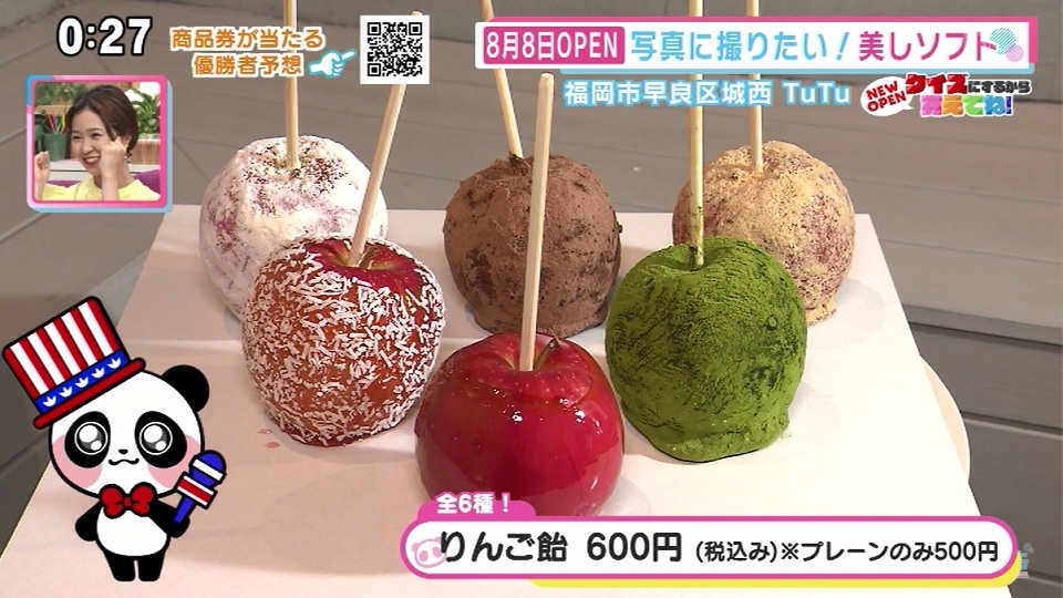 住所:福岡市早良区城西3-21-27 りんご飴 600円(税込み) *プレーンのみ500円 新型コロナウイルス感染拡大により、営業時間・定休日が記載と異なる場合がございます。詳しくは店舗へご確認ください。