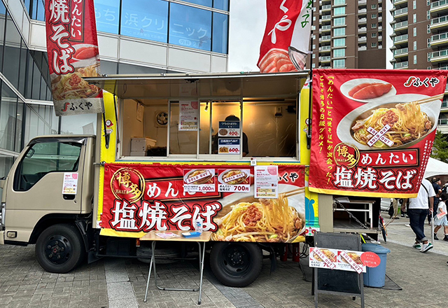 ふくや店舗でも、他でも味わえない キッチンカー限定ふくやの【めんたい塩焼そば】、是非ご賞味ください。 |