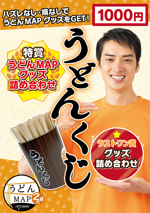 うどんMAP2代目リポーターの朝光が臨時店長 番組と同様、朝光からくじを引いてみませんか ハズレなしでうどんMAPグッズが当たります。