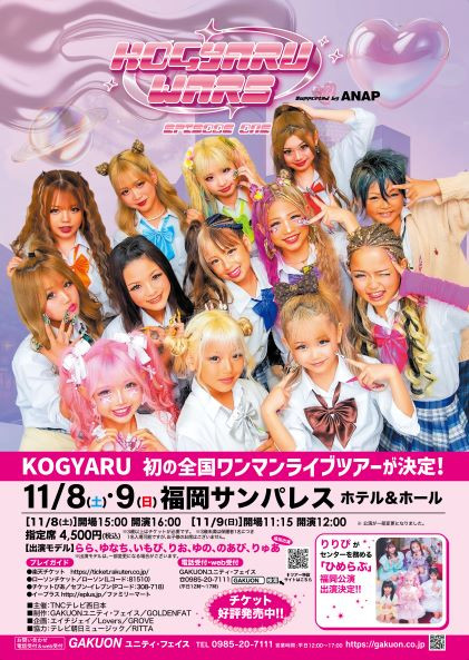 | 日 時 | 2025年11月8日(土) ①開場15:00 開演16:00 2025年11月9日(日) ①開場11:15 開演12:00 ※公演が一部変更になりました。 詳しくはKOGYARUオフィシャル全国ツアーサイトまで https://kogyaru.jp/ |