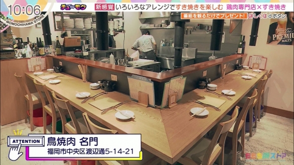 ★いま注目すべきグルメ・お店・ワードを紹介する「木曜日のチューモク」。今回は、今年のトレンド鍋が「新感覚すき焼き」ということで、これまでのすき焼きをいろんなアレンジで楽しめる福岡のお店をご紹介!自然薯専門店「筥崎とろろ」では、すき焼きと自然薯とろろの絶品コラボを堪能!また、鳥焼肉専門店「名門」では、新感覚とりすきが登場!さらにお家で簡単にできるすき焼きアレンジもご紹介します。★思わず驚くインパクトのグルメやちょっとやりすぎてしまっているサービスのお店など、思わず「バカだなぁ~」と言ってしまうグルメを訪ねる「バカだなぁグルメ」。今回は、思わず食べるのをためらってしまうスイーツが登場!青木さん罪悪感MAXでいただきます。そしてもう一つは、日本の伝統料理が進化しすぎたグルメをご紹介。見た目と中身のギャップに驚かされました。★生中継「あべちゃんカメラが行く!」では、博多阪急で気になる秋冬限定ポップアップストアから生中継。ヴィーガンコスメ&コラーゲン入りドーナツをご紹介します。