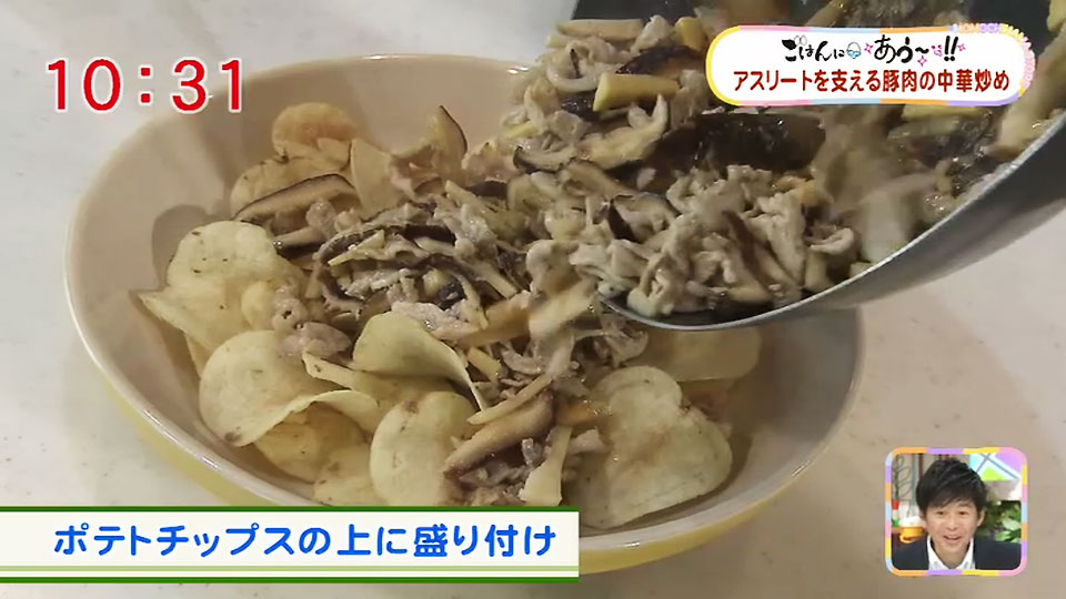 器にポテトチップスを盛り、その上に(5)を盛り付ける。