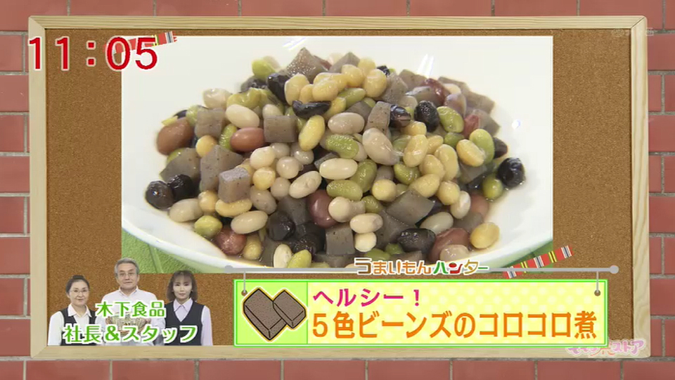 (3)水気を切ったこんにゃく、5色豆、ヒタヒタになるくらいの水を鍋に入れ さらに多めの砂糖を加え、ふたをして15分ほど煮込む