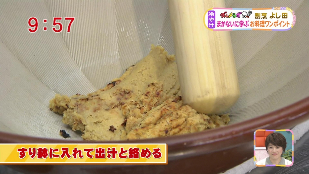 【材料】 4人分 炒りゴマ 麦味噌 135g 米味噌 135g 鯛のほぐし身(余った焼き魚でもOK) みょうが 大葉 山芋 きゅうり(塩もみしておく) [出汁用] 昆布 かつおぶし 水