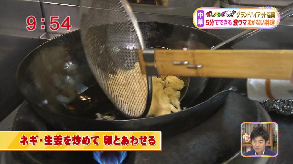 (3)ねぎ・しょうがを炒めて香りを出したら、卵を戻す