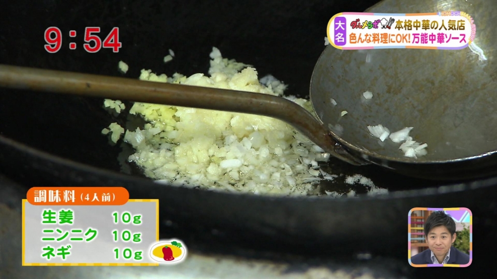 (1)しょうが・にんにく・ねぎをみじん切りにし、強火で炒める