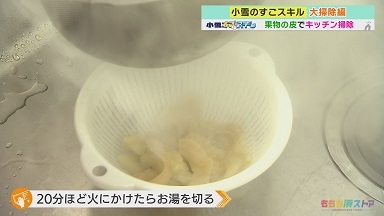 ①林檎の皮や芯を水に浸して沸騰するまで加熱