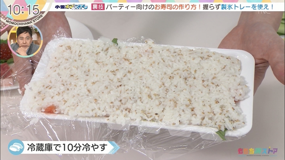 上から酢飯を乗せ、平らになるように押し込む