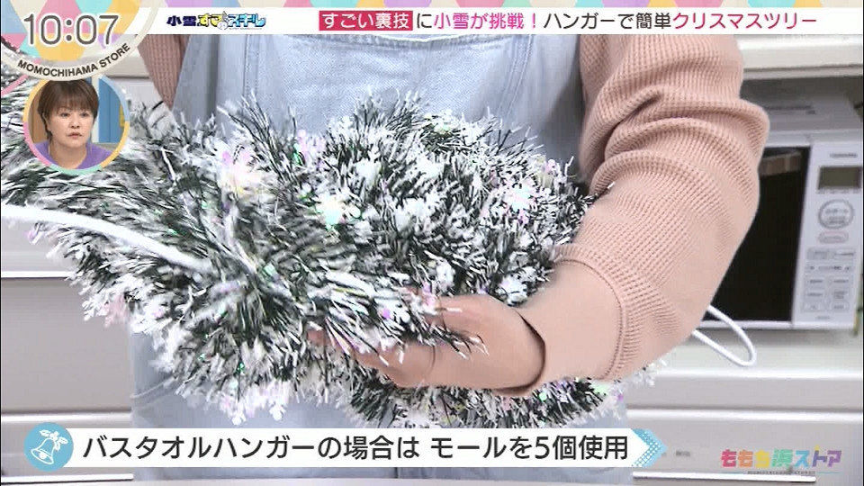 準備する物 ・ハンガー(バスタオル用) ・クリスマスモール 5個 ・飾り用のリボンやライト