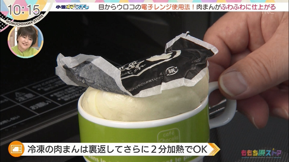 マグカップに肉まんをのせる
