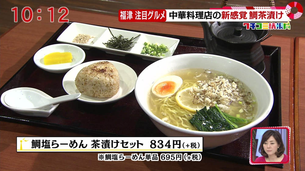 鯛塩らーめん茶漬けセット 834円+税 *単品 695円+税