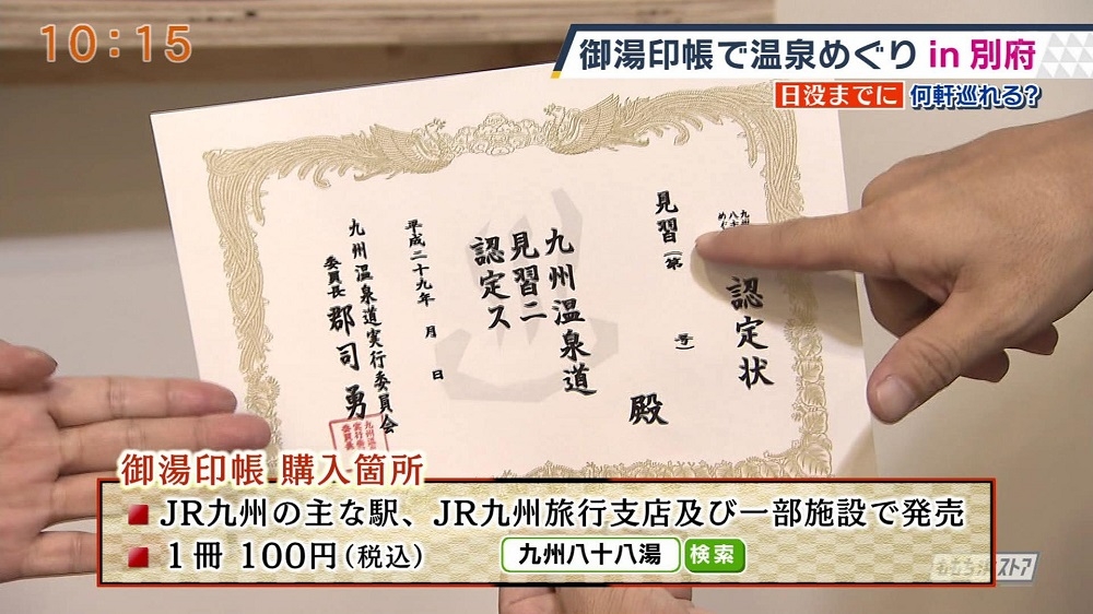 JR九州の主な駅、JR九州旅行支店及び一部施設で発売 一冊 100円(税込) *詳細は「九州八十八湯」で検索 *御湯印帳で温泉めぐりの旅in別府にて紹介