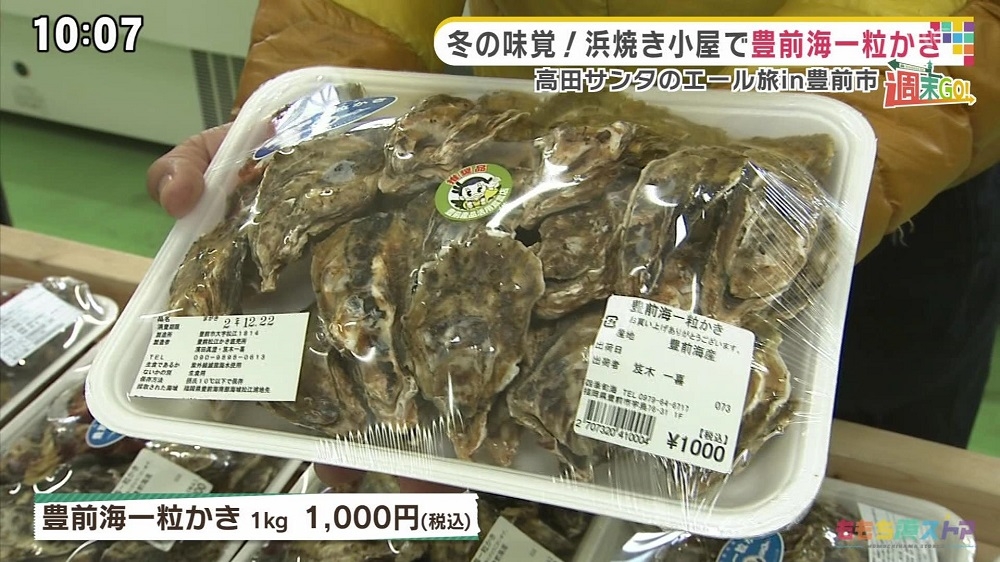 【住所】豊前市宇島76-31 豊前海一粒かき 1kg 1000円(税込) 豊前海特産 一粒かき専用ぽん酢 150ml 350円(税込) *週末GOにて紹介