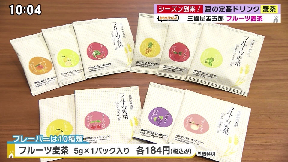 フルーツ麦茶(5g×1パック入り) 各184円(税込み) *送料別 *オンラインショップ「三國屋善五郎」で検索 *ももちタイムズにて紹介