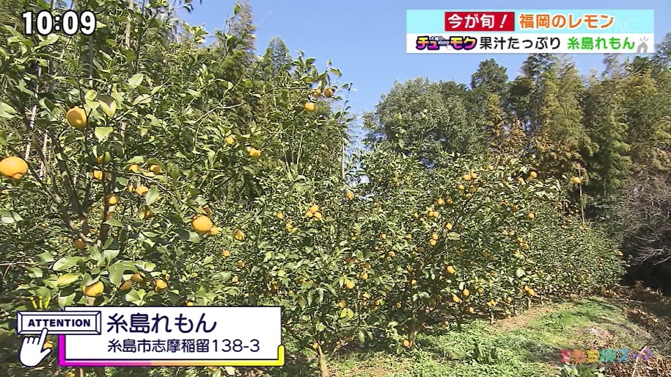 【住所】糸島市志摩稲留138-3 「糸島れもん」で検索 *詳しくはインスタグラムへ(@itoshima_lemon) *木曜日のチューモクにて紹介