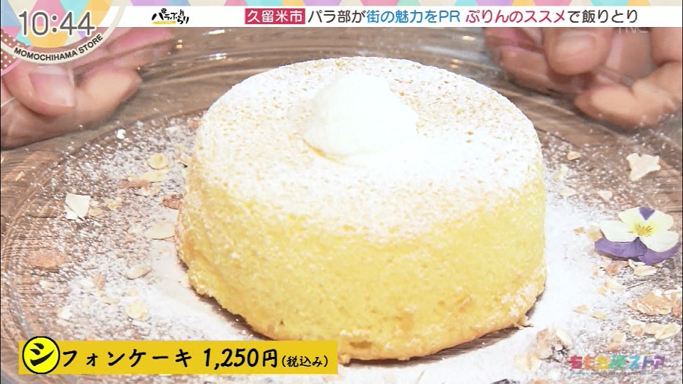 【住所】久留米市城南町16-6 【営業時間】10:00~21:00 【定休日】1月1日 シフォンケーキ 1250円(税込み) *パラぶらりにて紹介