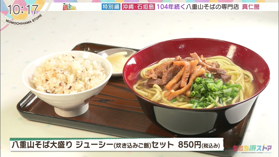 八重山そば大盛り ジューシー(炊き込みご飯)セット 850円(税込み)
