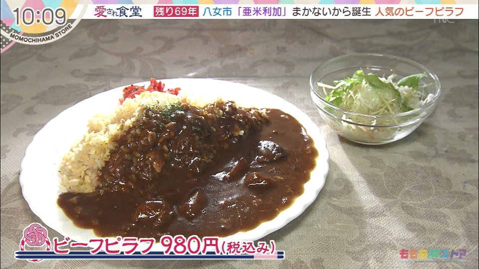 【住所】八女市龍ヶ原266-1 【電話】0943-24-0915 【営業時間】10:00~22:30 ビーフピラフ 980円(税込み) *愛され食堂~つないで100年~にて紹介