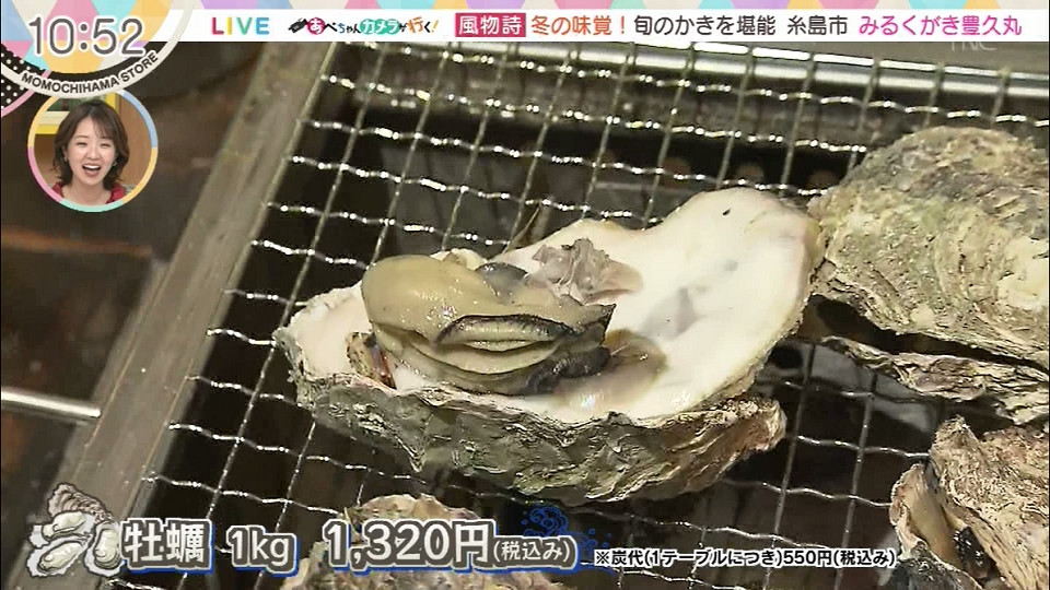 牡蠣 1kg 1320円(税込み) *炭代(1テーブルにつき)550円(税込み)