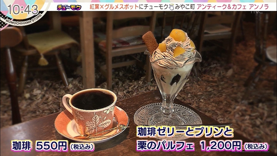 【住所】福岡県京都郡みやこ町犀川本庄514-3 珈琲ゼリーとプリンと栗のパルフェ 1200円(税込み) *木曜日のチューモクにて紹介