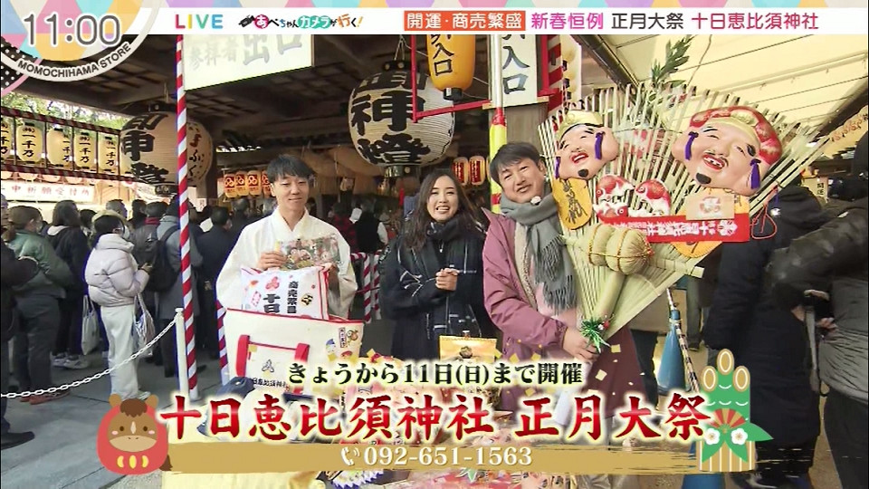 【住所】福岡市博多区東公園8-1 【電話】092-651-1563 十日恵比須神社 正月大祭 1/11まで開催 *中継にて紹介