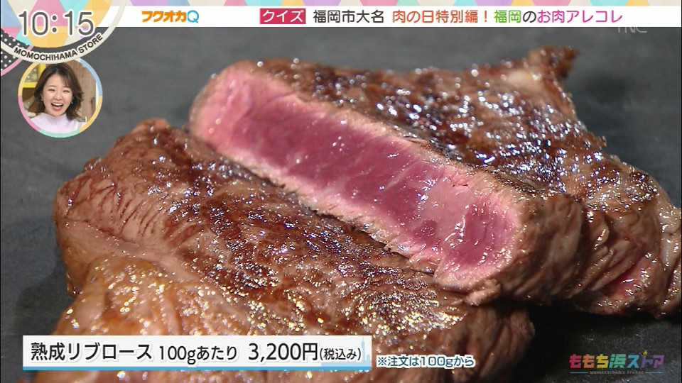 【住所】福岡市中央区大名1-4-29 熟成リブロース 100gあたり 3200円(税込み) *注文は100gから *フクオカQにて紹介