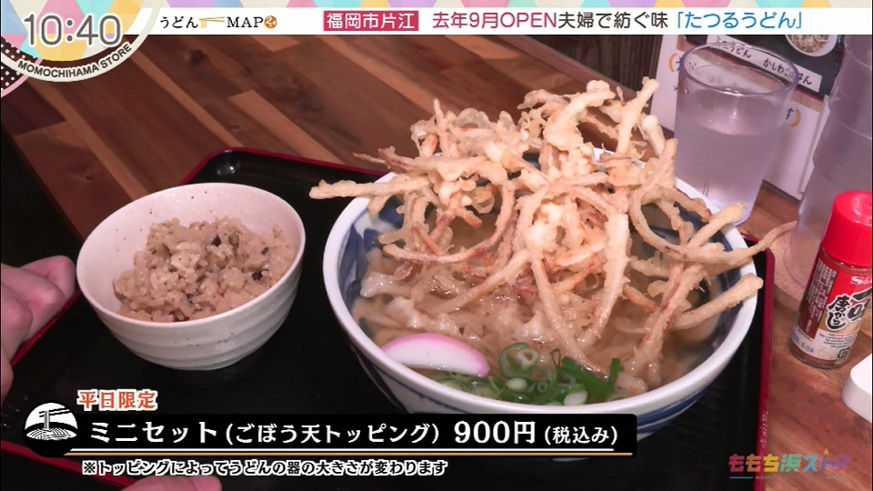 平日限定 ミニセット(ごぼう天トッピング) 900円(税込み)