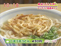 【住所】久留米市六ツ門町2-18 【電話】0942-32-8071 【営業時間】10:00~19:30 【定休日】水曜 ごぼう天うどん…430円