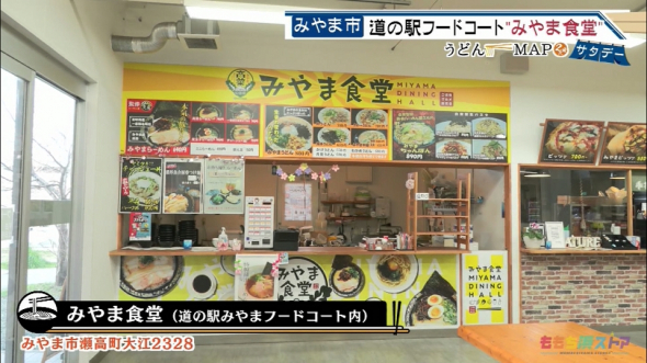 【住所】みやま市瀬高町大江2328 道の駅みやまフードコート 【営業時間】9:00~17:00 【定休日】年末年始及び道の駅みやま臨時休業日 みやまうどん 800円(税込み) *うどんMAPサタデーにて紹介