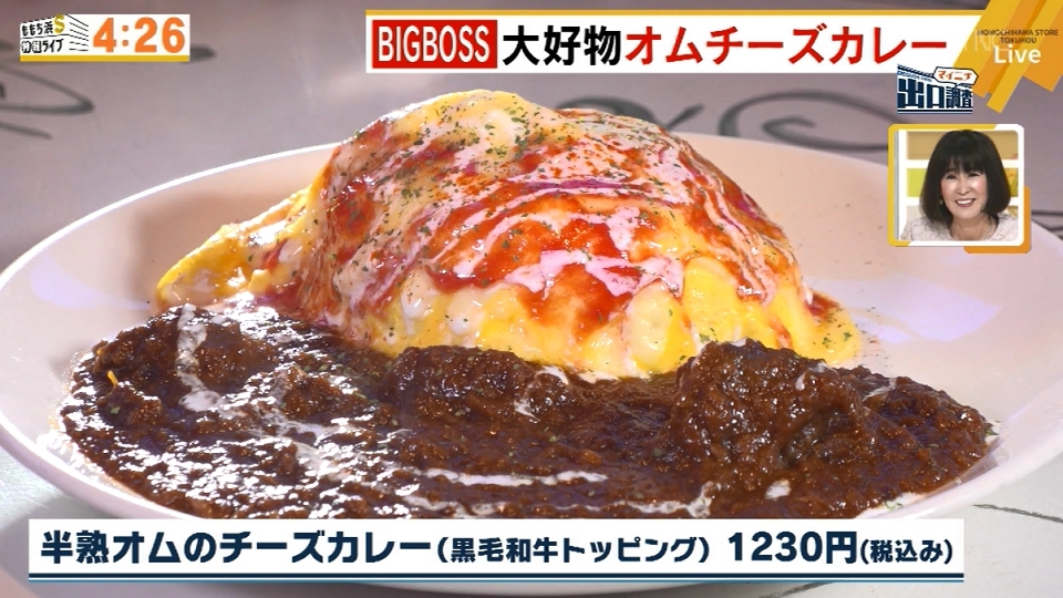 住所:北海道旭川市緑町19-2856 電話:0166-55-9014 半熟オムのチーズカレー(黒毛和牛トッピング) 1230円(税込み)