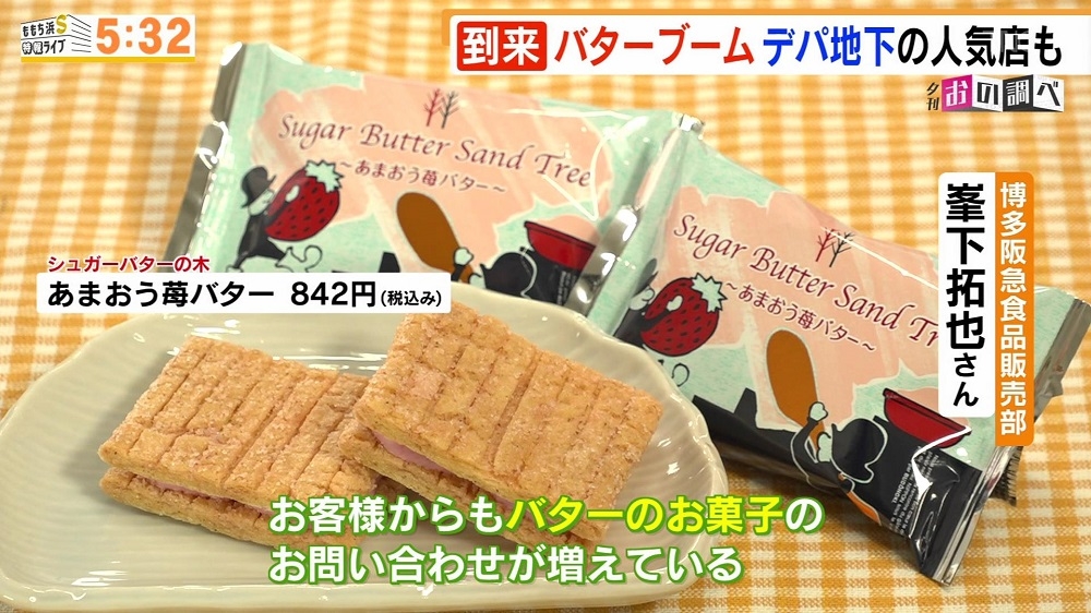 シュガーバターの木 あまおう苺バター 842円(税込) ハッピーターンズ めんたいバター 540円(税込) カルビープラス エッセンポテト 明太子バター味 540円(税込) *夕刊おの調べにて紹介